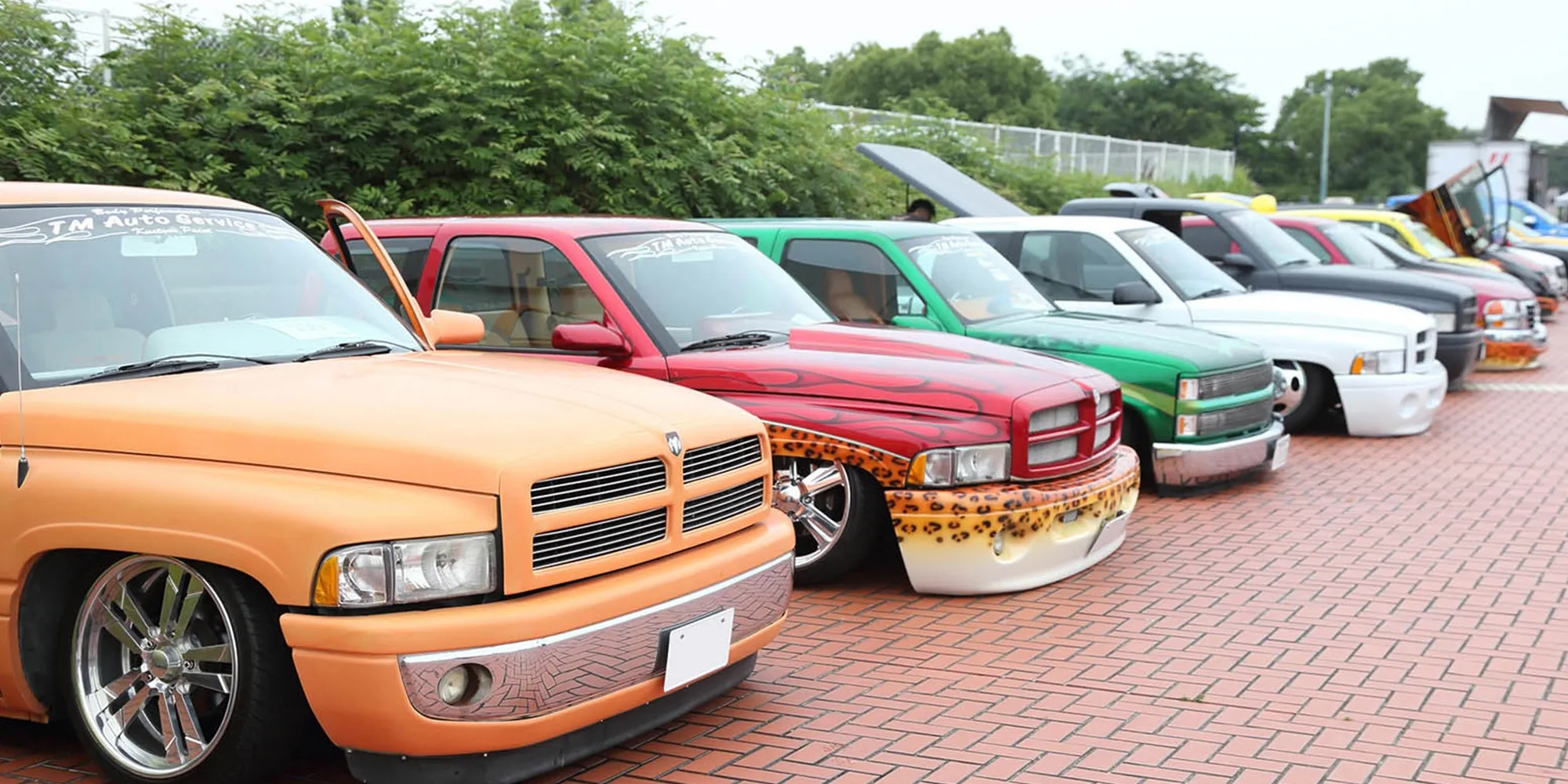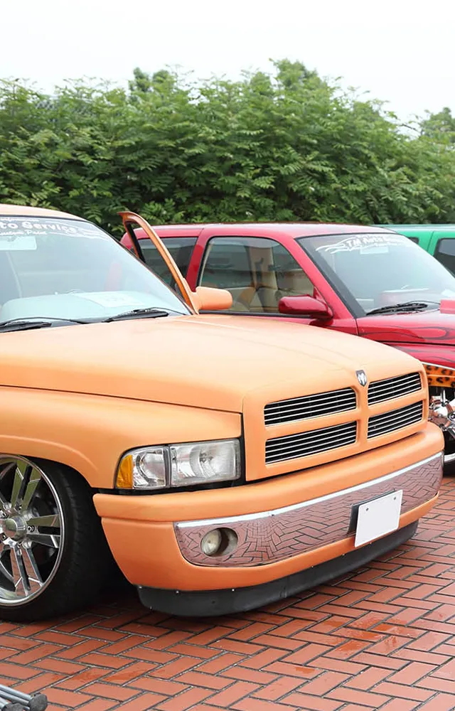 TM AUTO SERVICEは、カスタムペイント、ボディーワークを得意とするトータルプロデュースショップです。全塗装、ピンストライプ、内装リメイク、タイヤ&ホイール交換、エアサス等、様々なカスタムに対応しております。また、当社ではアメリカ本国からの直接輸入が可能ですので、国内ではなかなか手に入らない希少なパーツから、消耗品、ベースカーまで、お客様のご予算・ご要望に合わせてお探しします。新車のカスタムも、ヴィンテージのレストアも、まずはお気軽にご相談ください。事故修理、メンテナンス、任意保険もワンストップ対応しております。